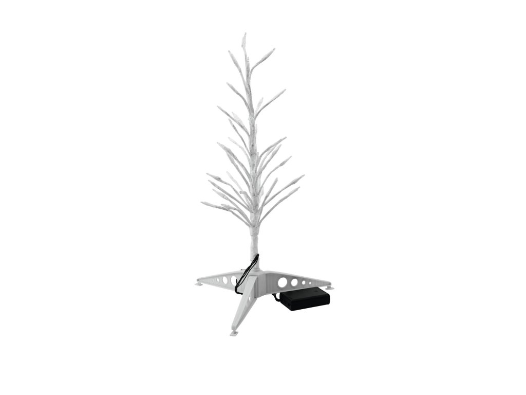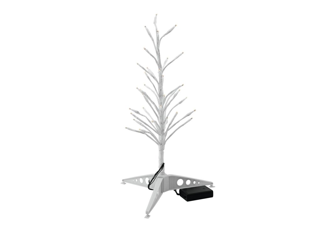 Netradiční dekorativní vánoční stromeček s bílým LED osvětlením. Výška stromku 40 cm, teplota barev svícení studená bílá. Kmen a větvičky v bílé barvě jsou lehce tvarovatelné. Celkem je stromek osazen 35 LED diodami, není tedy třeba dokupovat světelný řetěz. K dispozici je několik automatických programů svícení. Dodáváno včetně stojánku.Napájení: 4,5 V DC