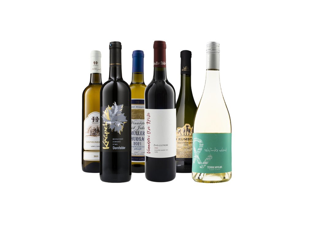 Balíček obsahuje: Rulandské bílé 2018, polosuché, Pod Kumstátem Veltlínské zelené 2021, suché, Terra Wylak Souvignier Gris 2019, sladké, Vinařství Pavel Hruška Dornfelder 2022, polosuché, Vinařství Křápek Müller Thurgau 2021, polosuché, Vinařství Šmíd Jakubec Zweigeltrebe 2020, suché, Vinařství U sv. KřížeBuďte první, kdo napíše příspěvek k této položce.