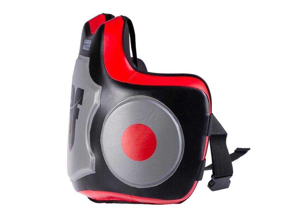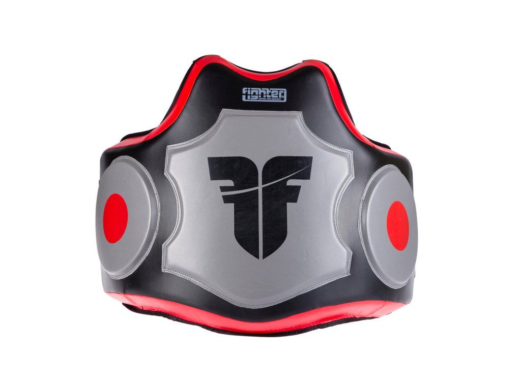 Tréninkový pás Fighter Target - černá/červená Tréninkový pás pro trenéry od značky Fighter je vyroben z trvanlivé syntetické kůže. Anatomický tvar zaručuje neomezený pohyb a správnou ochranu. V oblasti břicha a pasu je zvýšená výplň o tlousťce cca 6cm. Další zvětšená ochrana je na boční straně pásu cca 1cm. Vícevrstvá ochrana Odolný materiál Anatomický tvarDoplňkové parametry