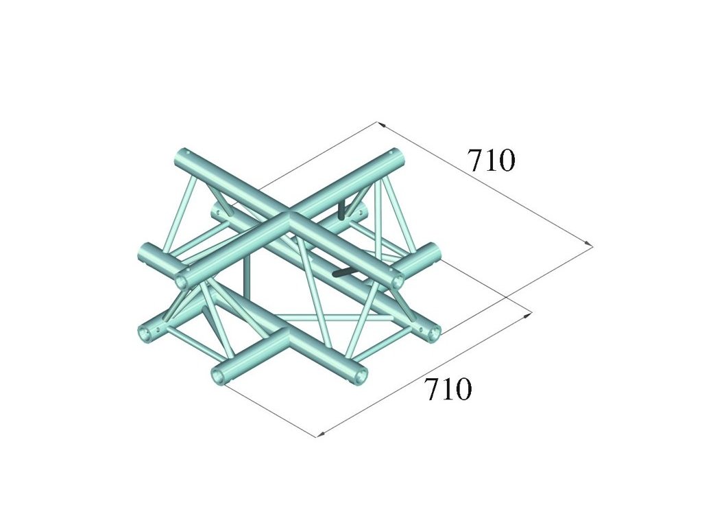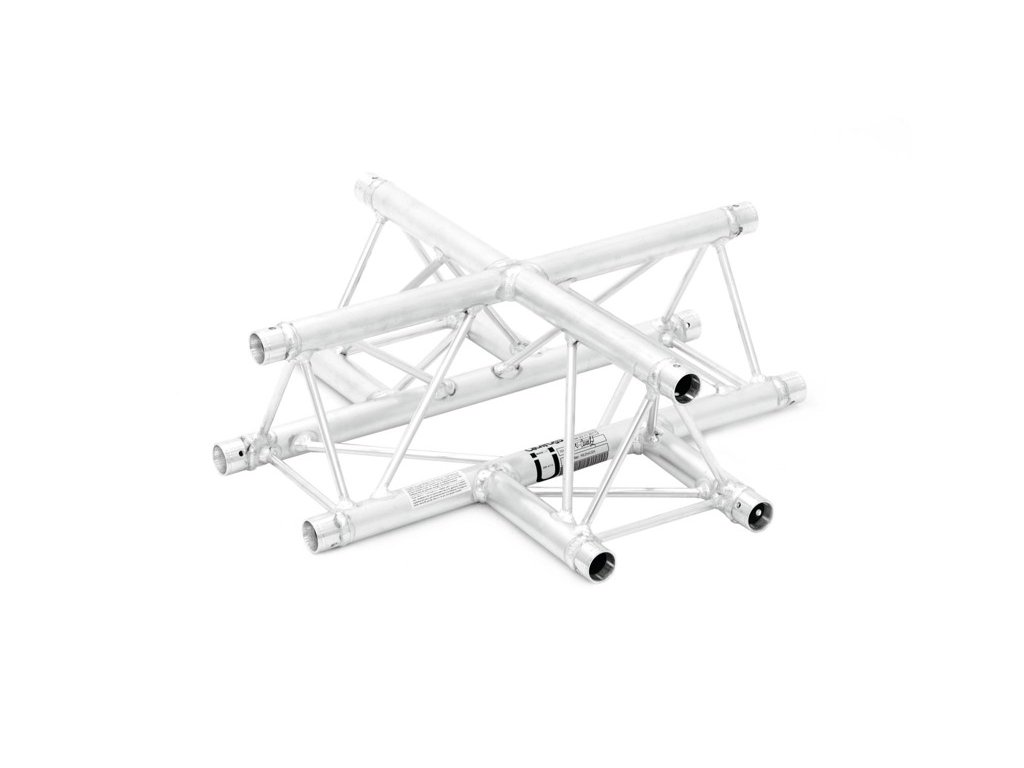 Trilock 6082AT-41, 4-koncový křížový díl, 3-bodový konstrukční systém. Vysoce kvalitní hliníkové provedení, tři hlavní trubky s průměrem 50 mm a šířkou stěny 2 mm, příčky s průměrem 16 mm a šířkou stěny 2 mm. Jednoduchá instalace, nízká hmotnost. Pro přehlídky, instalace v obchodech, diskotéky a divadla.Trusspipe: 50 mm x 2 mm