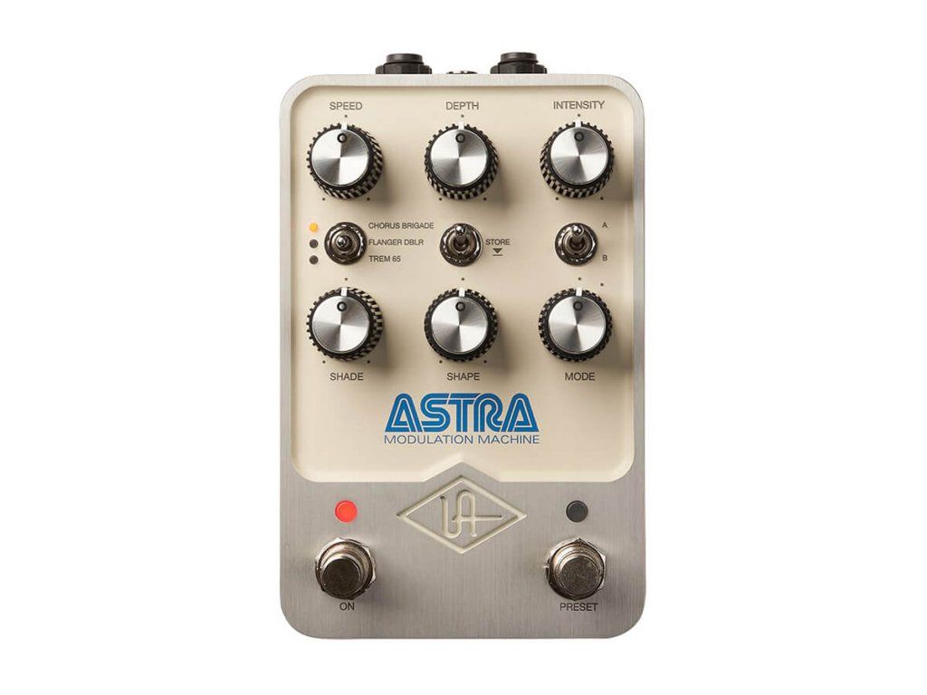 Od emulace prostorných flanger modulací studiové rackové jednotky MXR 126 ze 70. let, přes legendární zvuk kytarové krabičky chorus ensemble, až po opto-tube tremolo užité v kytarových aparátech 60. let. UAFX Astra Modulation najde okamžitě své místo ve vašem kytarovém pedalboardu. Bez obav jej ovšem můžete připojit k elektrickému pianu, syntezátoru, nebo použít jako outboard efekt ve vašem studiu.