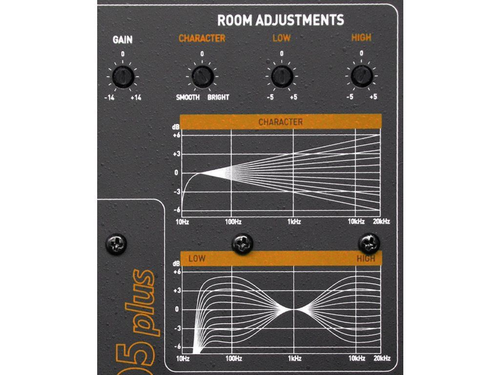 - ovládač korektury místnosti: Character: -6 .. 0dB .. +6; Low: -5 .. 0dB .. +5; High: -5 .. 0dB .. +5