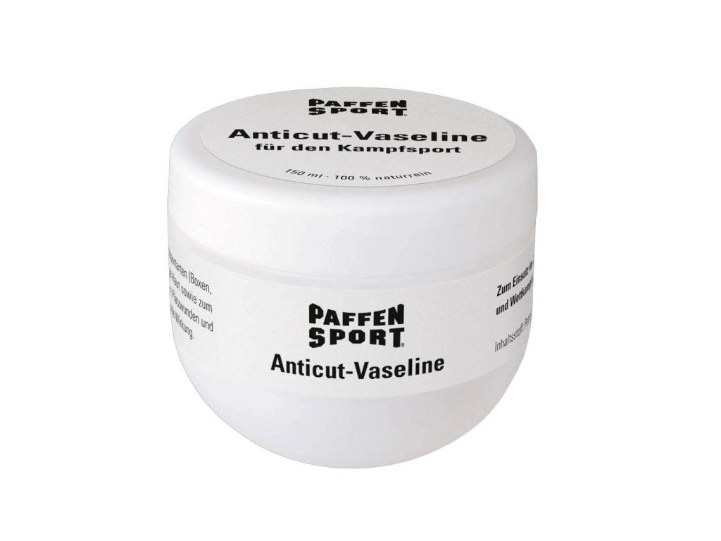 Vazelína 150 ml Ochranné mazivo používané při sparringu a soutěžích. Použitím vazelíny předejdete malým oděrkám a snížíte riziko rozseknutí kůže, která může vést až k vyřazení ze zápasu.Doplňkové parametry