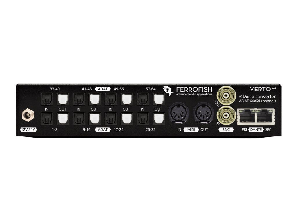 Obousměrný konvertor digitálních formátů Dante a ADAT s podporou až 96kHz a s možností dálkového MIDI ovládání.