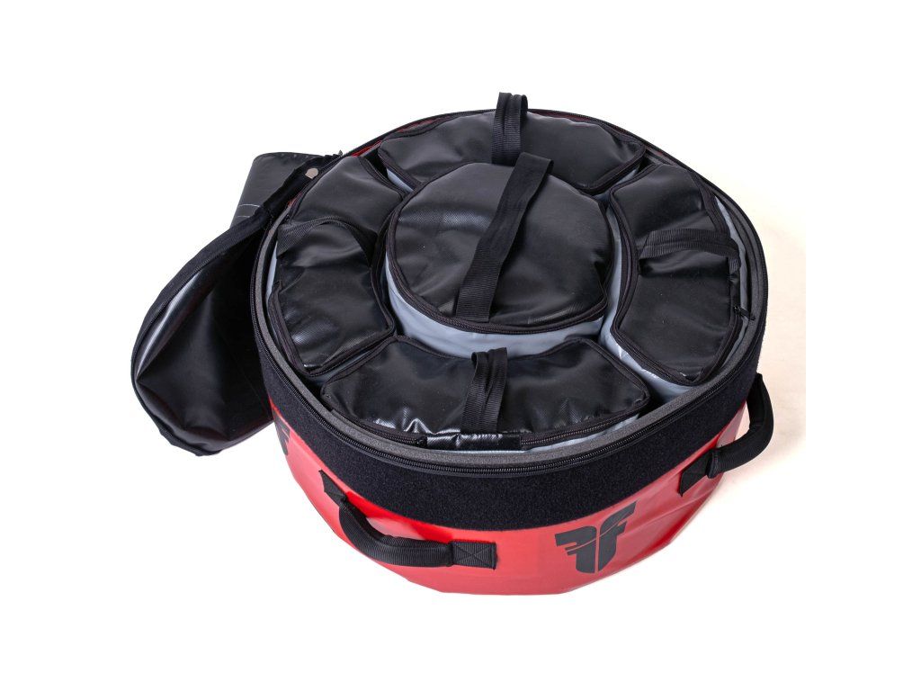 Volně stojící boxovací pytel Fighter MAXIMUS je zárukou kvality, který vám přináší zcela unikátní tréninkový zážitek. Fighter MAXIMUS je navržen tak, aby splňoval požadavky sportovců všech úrovní, od začátečníků po profesionály. Kombinuje maximální funkčnost, pohodlí a bezpečnost, čímž se stává nepostradatelnou součástí každého tréninku.Díky jedinečnému složení, ze kterého je pytel vyroben, je možné jej použít jak v interiéru (tělocvičny, fitness centra, domácí prostředí), tak v exteriéru (terasy, workoutová hřiště). Je ideální pro trénink disciplín, jako jsou box, kickbox, MMA, karate, taekwondo nebo brazilské jiu-jitsu.Optimální umístění těžiště ve spodní části pytle zajišťuje maximální stabilitu i po silném úderu, díky čemuž se pytel automaticky vrátí do vzpřímené polohy. Pokud by se jej přesto podařilo převrátit, lze jej snadno vrátit zpět ,,jediným pohybem prstu". Podstava je plněna pískovým závažím o hmotnosti přibližně 105 kg, které zajišťuje výjimečnou stabilitu pytle. Závaží je dodáváno ve speciálních PVC vacích, jež se snadno vloží do základny pytle. Díky tomuto řešení lze i takto těžký pytel jednoduše přemístit bez nutnosti vysypávání či vylévání obsahu. Podstava je vyrobena z měkkého materiálu, což eliminuje riziko úrazu při kontaktu během tréninku. Pro pohodlnější manipulaci jsou na spodní části umístěna ergonomická madla. Vnější plášť pytle je vyroben ze syntetické kůže s PVC vrstvou, která je podložena měkkou pěnovou výstelkou. Tento materiál umožňuje komfortní trénink i bez použití rukavic a minimalizuje riziko odřenin kloubů. Navíc je snadno omyvatelný a nenáročný na údržbu. Pytel byl kompletně vyvinut v České republice ve spolupráci se sportovci z různých disciplín. Výroba probíhá výhradně v České republice, což zajišťuje vysokou kvalitu a podporu lokálního průmyslu. Vlastnosti boxovacího pytle: Snadná manipulace: Díky promyšlené konstrukci lze pytel snadno přesunout. Univerzální použití: Ideální do tělocvičny i pro domácí trénink. Praktický design: Materiál je lehce omyvatelný a nenáročný na údržbu. Odolnost: Vyroben z osvědčeného a vysoce odolného materiálu. Rozměry: Výška 180 cm( včetně podstavy), průměr pytle i podstavy 60 cm. Hmotnost: Podstava 105 kg, samotný pytel 15 kg. Kvalitní výroba: Kompletně vyrobeno v České republice, s použitím materiálů z EU. Upozornění: Drobné oděrky na povrchu nejsou vadou. Jedná se o estetické nedokonalosti vzniklé při výrobě, které nijak neovlivňují funkčnost ani životnost produktu. Návod k sestavení Příprava základny a pytlíků Položte základnu na rovný povrch. Připravte si pět pytlíků s náplní: (čtyři mírně zaoblené, jeden válcovitý.) 2. Umístění válcovitého pytle Umístěte válcovitý pytel doprostřed základny. 3. Rozmístění zaoblených pytlíků Lehce stlačte zaoblené pytlíky a rovnoměrně je rozložte kolem válcovitého pytle. TIP : Můžete zaoblené pytlíky potřít trochou vody smíchanou s jarem, pro snažší manipulaci při rozložení. 4. Vyrovnání náplně Uchopte základnu za úchyty, mírně ji nadzvedněte a několikrát jemně sklepněte, aby se náplň rovnoměrně rozprostřela. 5. Vložení molitanu a uzavření základny Vložte kulatý molitan na vrch náplně. Základnu uzavřete zipem. 6. Připevnění těla pytle k základně Umístěte tělo pytle na základnu tak, aby strana s úchyty směřovala nahoru. Připevněte tělo pytle k základně pomocí šesti suchých pásků rovnoměrně rozmístěných po obvodu. TIP : Pro co nejlepší rovnost pytle je ideální lepit suché pásky vždy naproti sobě. 7. Zajištění velkým pásem Omotejte spoj mezi pytlem a základnou velkým pásem se suchým zipem. Molitanová výplň na pásu zakryje mezeru mezi těmito dvěma částmi. 8. Dotažení a finalizace Pás pevně utáhněte, aby spoj držel stabilně. TIP : Pokud se po delším čase aktivního užívání zdá pytel postavený nakřivo, kvůli sesazenému molitanu ve vrchní části podstavy, stačí opětovné upevnění pomocí suchých pásků a mělo by být vše v pořádku. Hotovo! Boxovací pytel je nyní připraven k použití. Užijte si trénink!Doplňkové parametry