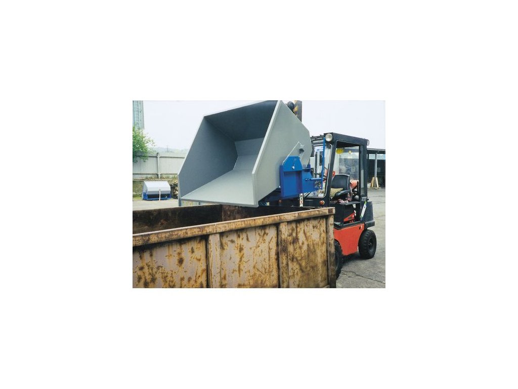 Ocelový lakovaný výklopný kontejner pro převoz materiálu a odpadu. Vyrobeno z kvalitního ocelového plechu s tloušťkou materiálu 3 mm. Vodící trny jsou vyhotoveny z kulatiny o průměru 20 mm. Vybaveno pákou na pružině pro vyklopení – plochá tyč 40 x 10 mm. Povrchová úprava je prováděna lakováním. Manipulace pomocí VZV. Není nutná úprava vysokozdvižného vozíku.Doplňkové parametry
