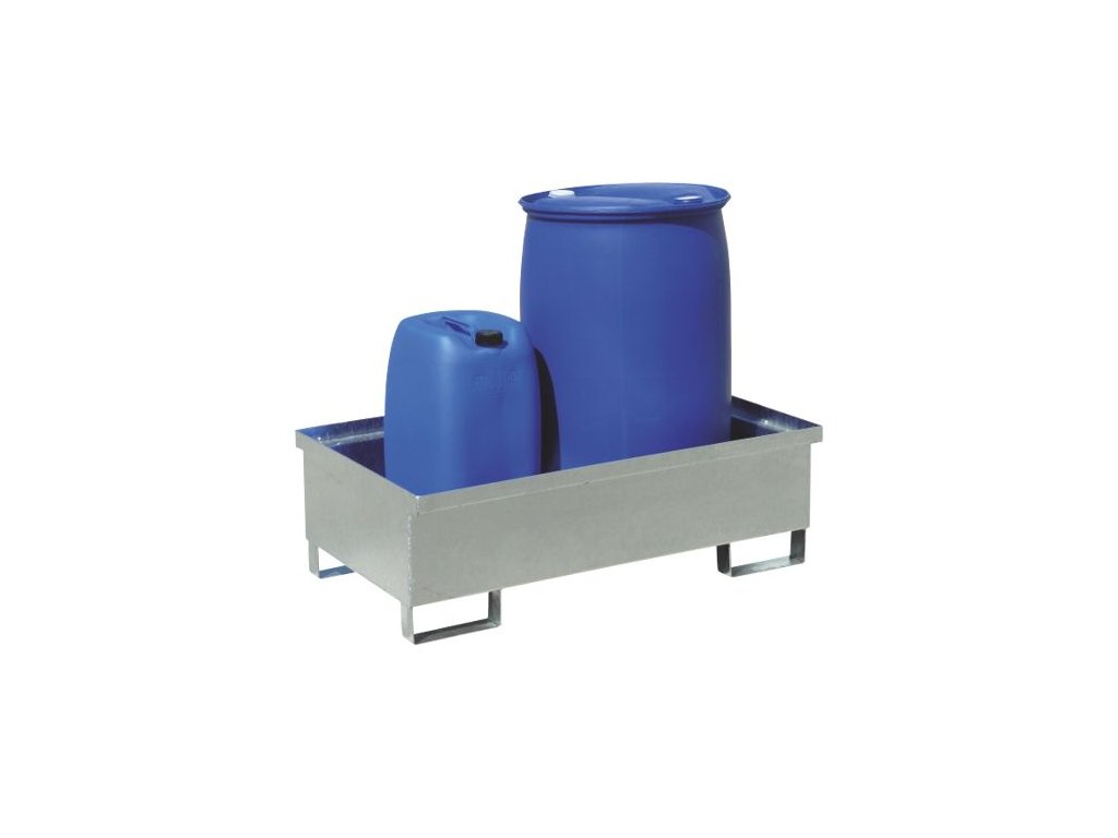 Ocelová žárově zinkovaná záchytná vana bez roštu. Umožňuje zachycení unikajících nebezpečných kapalin. Vhodné pro skladování 200 l sudů nebo menších nádob. Vybaveno kapsami pro bezpečnou manipulaci pomocí VZV techniky.Doplňkové parametry